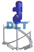 刮壁式攪拌器在動(dòng)力機(jī)構(gòu)的驅(qū)動(dòng)下進(jìn)行旋轉(zhuǎn),在旋轉(zhuǎn)過程中,驅(qū)使物料做軸向旋轉(zhuǎn)和徑向旋轉(zhuǎn),使之?dāng)嚢杌旌暇鶆颍瑫r(shí)在攪拌器的四周帶有四氟刮壁材料,對(duì)桶體內(nèi)壁及桶底進(jìn)行刮拭,無殘留刮壁;高速分散盤在高速狀態(tài)下,具有很高的剪切力,短時(shí)間內(nèi)將物料分散均勻。